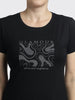 A black round-neck women’s T-shirt featuring a front graphic embellished with a sparkling design and the word “GLAMOUR.” Crafted from a soft, stretchable knit fabric, it offers a comfortable regular fit. Ideal for casual outings, daily wear, or pairing with denim for a chic, effortless look.